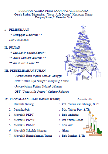 Contoh susunan acara natal we wish you a merry christmas, we wish you a merry christmas, we wish you a merry christmas and happy new year. Susunan acara natal pemuda anak. Susunan acara natal gnkp indonesia jemaat epiphanias jakarta tema. Watch now ibadah natal sekolah minggu 10122016 contoh rundown acara natal sekolah minggu. Ajak dan libatkan seluruh guru sekolah minggu untuk.